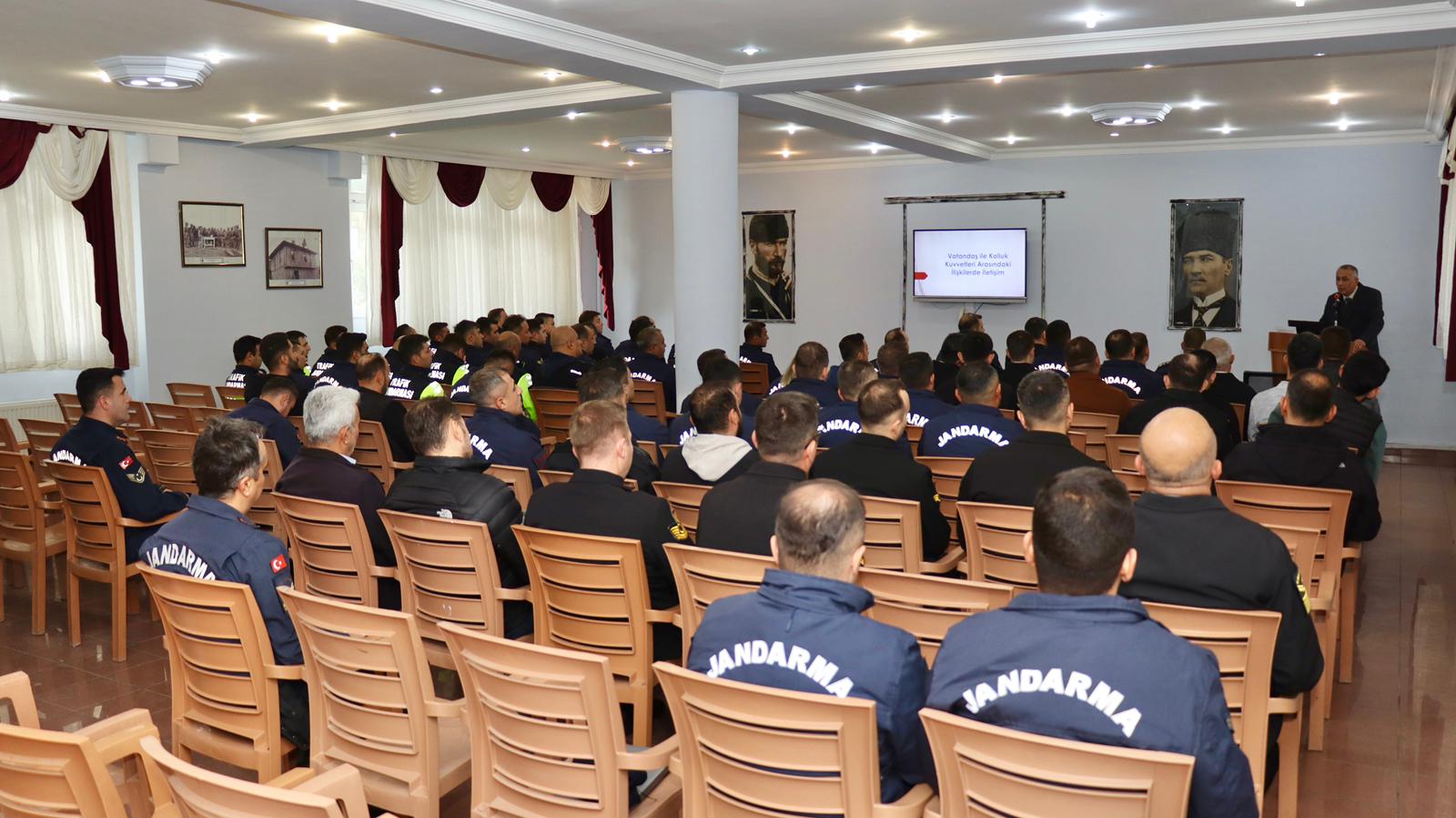 Bölümümüz öğretim üyelerinden Dr. Öğr. Üyesi Selahattin TOPBAŞ, 09.10.2025 tarihinde Çankırı İl Jandarma Komutanlığında il jandarma teşkilatına “Vatandaş ile Kolluk Kuvvetleri Arasındaki İlişkilerde İletişimin Sağlanması İçin Hitabet” konulu eğitim vermiştir.