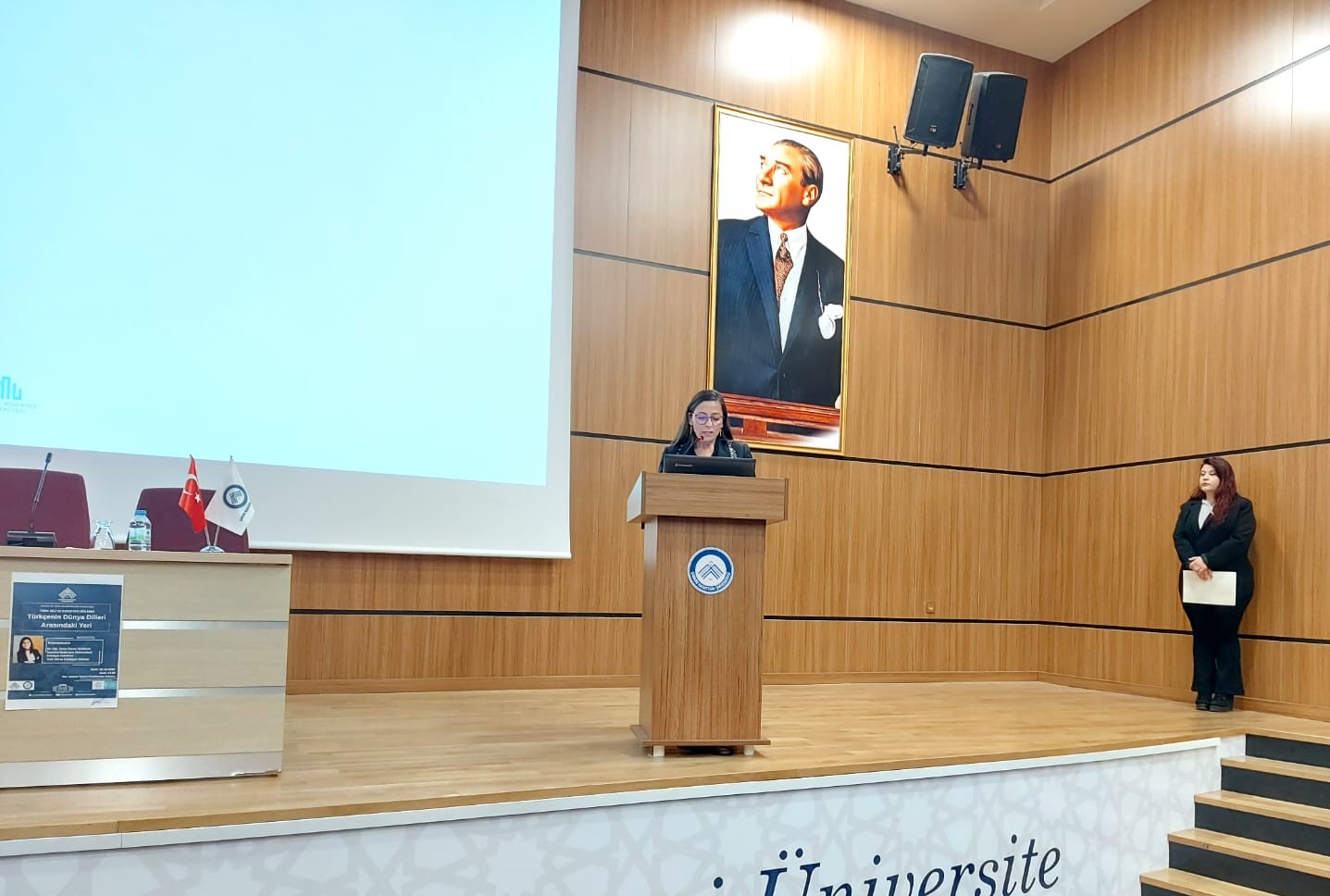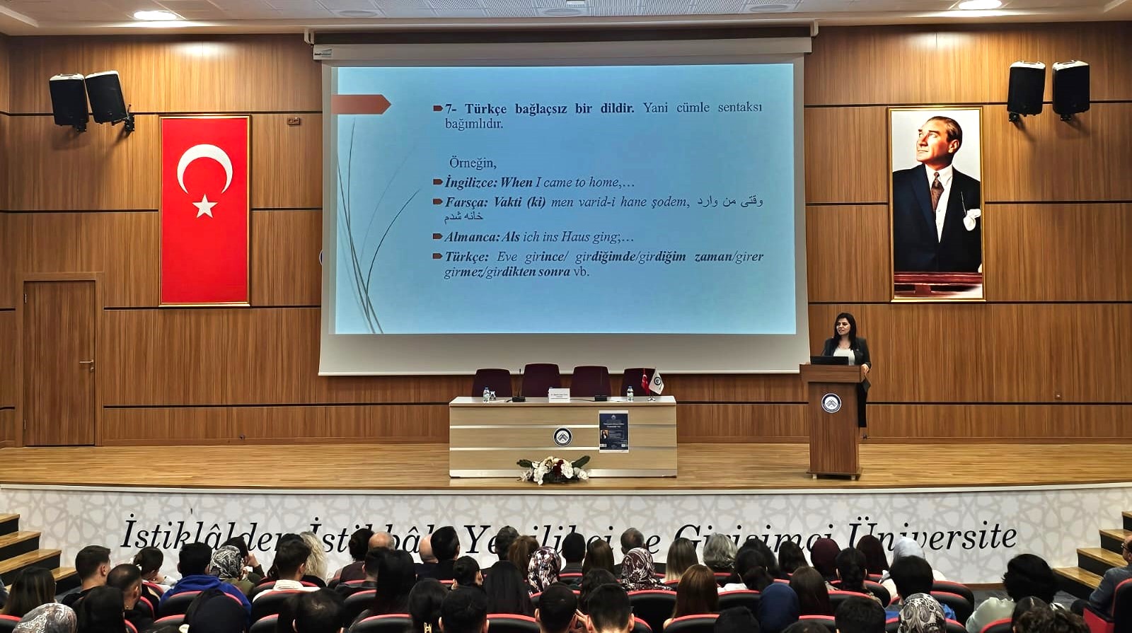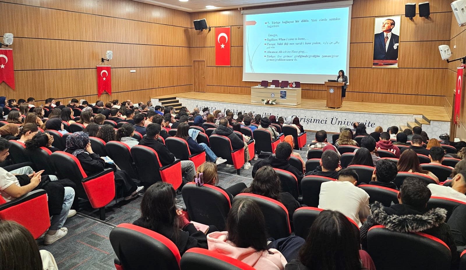 08.10.2025 tarihinde İstanbul Medeniyet Üniversitesi Dr. Öğretim Üyesi Öznur Durgun`un konuşmacı olarak katıldığı "Türkçenin Dünya Dilleri Arasındaki Yeri" konulu konferans düzenlenmiştir. Akademik personel ve öğrencilerin katılımıyla gerçekleştirilen konferansta Durgun tarafından Türkçenin önemi ve dünya dilleri arasındaki yeri anlatılmıştır. Program Türk Dili ve Edebiyatı bölüm başkanı Doç. Dr. Serap Aslan Cobutoğlu tarafından gerçekleştirilen teşekkür ve hediye takdiminin ardından toplu fotoğraf çekimi ile sona ermiştir.